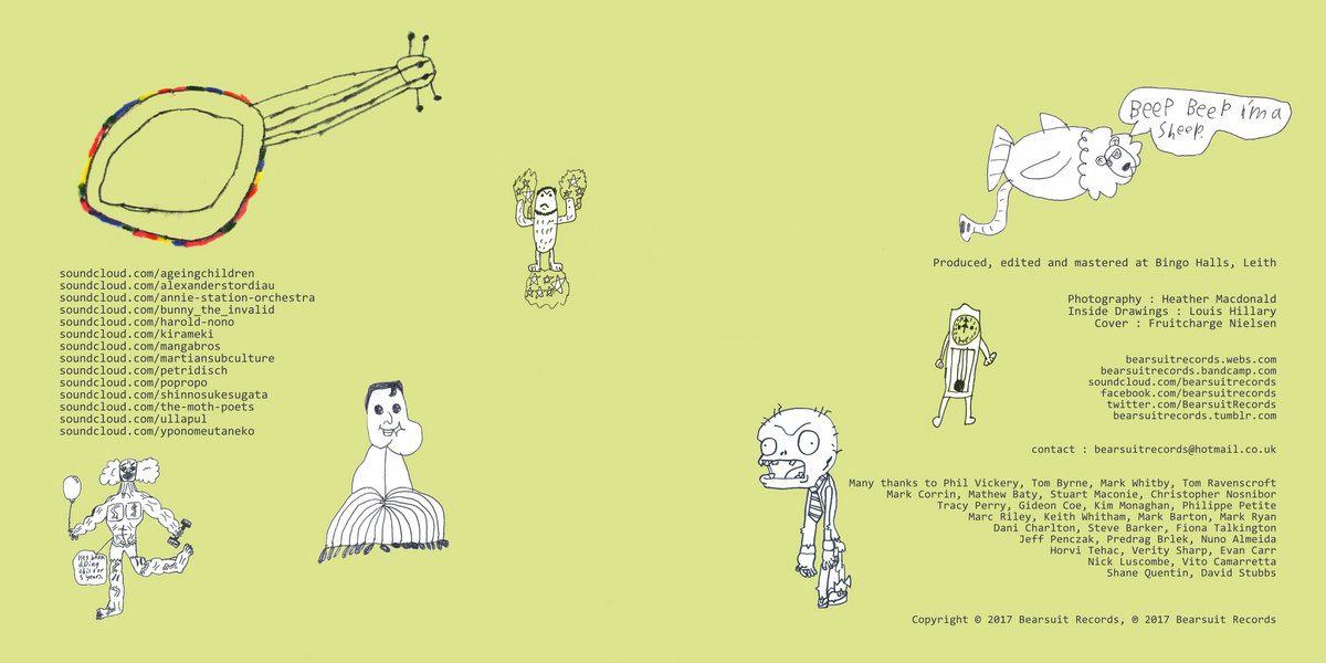 The album’s acknowledgements indicate that the little Edinburgh label has some high-profile and well-respected champions, including Stuart Maconie, Tom Ravenscroft, Gideon Coe, Mark Riley, David Stubbs… and some guy called Nosnibor. I’m deeply flattered to find myself in such prestigious company. It’s no secret that as a music writer, I’m a fan first and foremost, and Bearsuit stand out for their unswerving commitment to the weird and the wonderful – and, indeed, the wonderfully weird.